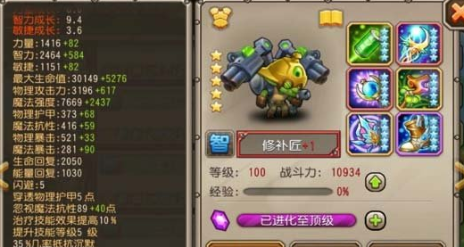 专属觉醒装备“超级电池”,修补匠智力、最大生命值和魔法暴击都得到大幅度提升。