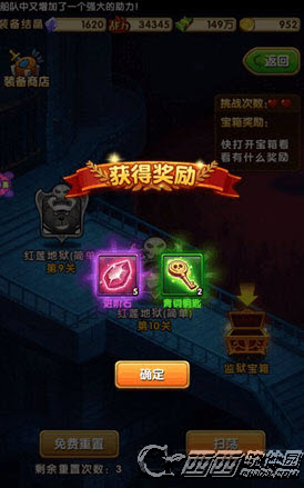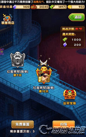 深海监狱玩法是船长从第一关开始探监,监狱关卡越往后难度越大,每通过四个小监狱有一个大监狱,每天可以重置3次,第一次免费,第二次150金币,第三次500金币。深海监狱主要的奖励为装备结晶和贝里,每一个小监狱的通关奖励为200贝里和40个装备结晶。每通过一个大监狱后都会有一个监狱宝箱,宝箱中有很多游戏里面所需要的道具,比如附魔石、进阶石、宝箱钥匙、刷新卡等等,肯定关卡过的越多奖励越丰厚。
