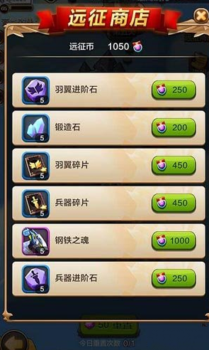 1、远征商店兑换——200远征币兑换5个锻造石,算下来也并不便宜了,毕竟远征币那么珍贵,过一个远征普通关才得50个,一天辛苦打下来的一点点远征币还要省下来兑换羽翼和兵器的碎片和进阶石,如何取舍,还是看各位的分配了哦。