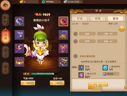 重铸玩法消耗的材料是陨铁、乾坤石和五行石,当然还需要一些银两。陨铁是较为稀有的材料,快速获取的途径就是通过商城直接购买,当然,玩家可以通过PVP系统获取陨铁。乾坤石和五行石是常规材料,大家都不陌生,通过副本、捉鬼和开宝箱都可以获得。因此,重铸系统可谓绿色亲民,不论RMB玩家或非R玩家都可以通过该玩法来提升自己的实力。