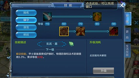 当玩家到达60级的时候,就可以学习玄武·盾这一技能了。这个被动技能可以让甲士玩家在装备装备盾牌或护腕时,提高物理防御和法术防御。防御能力对于甲士这个坦克职业来说是最重要不过的属性,防御力不够的话就无法始终顶在前排为队友创造输出环境。值得注意的是,玄武·盾这个技能对于物理防御和法术防御的提升是按照百分比来的。也就是说甲士的装备属性越好,提升的防御效果越明显。建议玩家主点这个技能并且注意提高自己的装备属性。