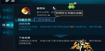 霹雳斩:群攻技能可以同时对前方多个敌方单位造成180%物理攻击,额外附加82点物理伤害。