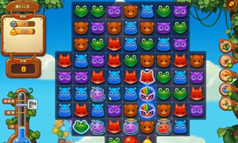 独眼仔是可以进行交换移动的,与元素一样的消除方式。但是消除独眼仔不会消失,只会逐渐的睁开自己的眼睛。当消除4次之后,眼睛全部的睁开之后,就会释放三个直线特效。当然释放的特效位置是关卡中与他相同的动物身上,但是选择的动物是随机的的。特效释放之后,就会直接的被消除