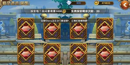 进入后我们可以看见有3个遗迹,最低等级开放的就是精灵遗迹,精灵遗迹中也是分难度等级的,分别是普通,困难,噩梦,随等级开放的,进入后会有8张卡牌,翻开后会进入副本,每天会有20次免费的机会,至于能不能拿到好的传说级光武,这就要看玩家自己的运气了。