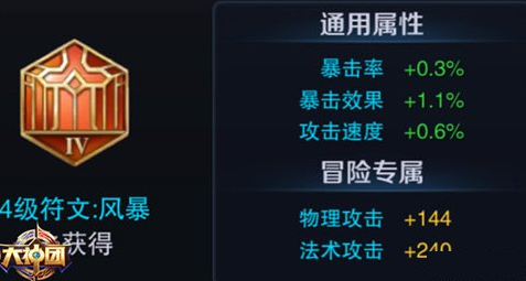 很多玩家不可能直接就用一套五级符文,那我这边再提供一套四级符文,也是从照攻速、暴击方向考虑。红色推荐用风暴,有攻击速度有暴击率。蓝色只有急救可用,绿色也只有野性可用。风暴和急救配合提供了10%的攻击速度,6%的暴击率很不错。