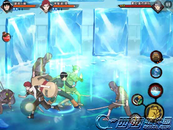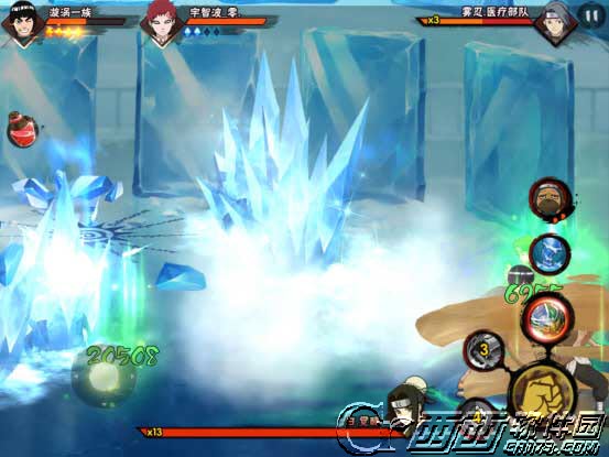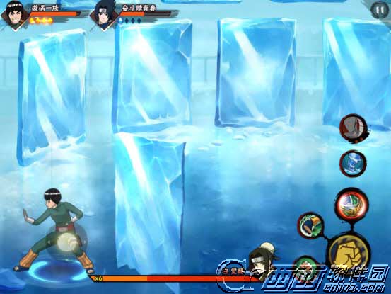在刷出两波小怪之后,觉醒白便会出现。她未出场时便会释放一个像千杀水翔一样的忍术,全屏结出冰柱,持续一断时间爆炸。这里建议大家在冰柱出现的第一时间找好位置,不要随意走动。因为冰柱会爆炸、碰到也会掉血。找好位置站定便好。