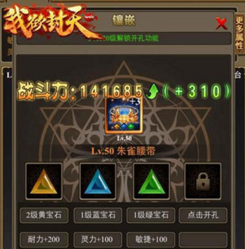 通过副本和任务,玩家有时还会得到稀有的宝石,可以把宝石镶嵌到自己中意的装备上,进一步提升装备能力。当然了,如果你的人品足够好,还可以通过神器吞噬功能,强化自己最钟爱的神器。