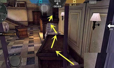 如何跳到壁炉上面:首先玩家要跳至木凳上,点两次跳跃键则是高跳,跳至木凳上,再来跳至柜子上。按照下图的箭头路线,最后跳至壁炉上面。