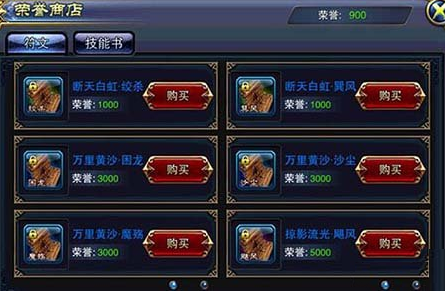在荣誉商店当中有所有技能的所有符文书籍售卖,玩家们所苦苦追寻的符文便可以在这里使用荣誉进行兑换。也可以在技能书界面换取技能升级所用到的技能书。
