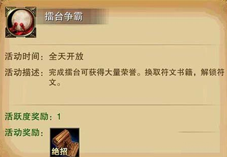 完成擂台挑战可以获取大量荣誉。荣誉能够换取符文书籍,俗话说得好知识就是力量。使用符文书籍便可以解锁符文。也可以用于换取升级技能所需要的技能书。