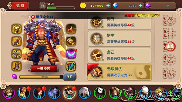 副将双子:双子的稀有技能无双神力还是蛮好用的, 也是个免疫控制的技能(我双子蓝1,免疫7.5秒)用来补充甜心旋风斩的免疫空挡。其次是双子的伤害反弹,可以用来对付对方主将,嘲讽对方副将。