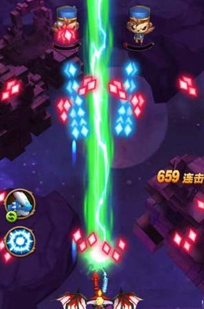 然后小怪还会发射这种箭头形的子弹,我们直接在子弹之间的空隙穿梭躲避即可。至此小怪基本上就过去了,下面就是小BOSS了。