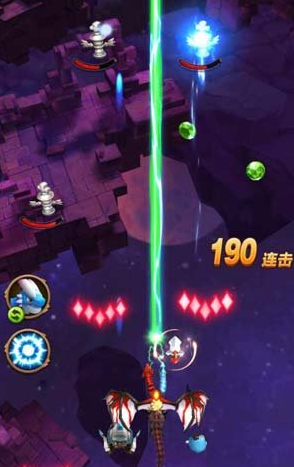 首先会出来几个小怪,发射一些图中这种零散的子弹,虽然有一点汇集的倾向,但是很慢,所以我们完全可以从旁边划过去。不过这个只是前奏,后面还会出现一横排的小怪,发射比较密集的子弹,就如下图。