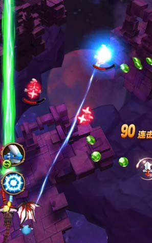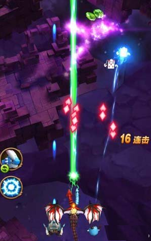 小BOSS开始跟小怪差不多,但是更加密集,速度也要快。找空隙躲避即可。在后面的一波小攻击还没消失的时候,大招就来了,BOSS会发射如图方向不一的红色子弹,速度较快,然后还有很多蓝色子弹,这个蓝色的不会移动太多就停止了,然后慢慢的拉长扩大,就是一个阻碍我们移动的障碍般的存在,而且红色的还在不停的攻击。这个就需要我们主要躲避红色,蓝色只要不撞到就没关系了。不过大家也可以用大招,直接来了速战速决也可以。