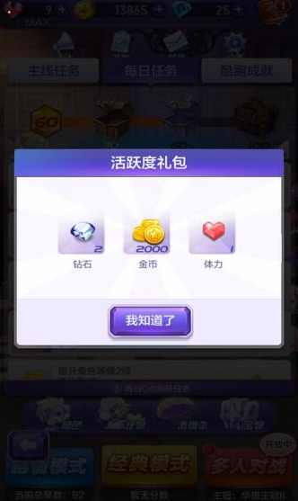 每日任务不再是单纯的简单跑动任务,任务需要玩家们通过多种游戏模式、游戏玩法甚至爱心消耗等多个方面来完成,这样,每日任务也更具有挑战性了。而除了多种多样任务之外,更新增了活跃度奖励。玩家们通过完成每日任务即可获得相应的活跃度,而达到相应的活跃度之后,玩家就可以开启活跃度宝箱领取奖励了。