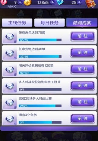 除了主线任务与每日任务有大礼相送外,还有酷跑成就的海量钻石等你来拿,缤纷好礼,送个不停。玩家们可以在跑酷成就中查看自己所完成的内容并领取相应的奖励,并且每个成就奖励都是海量钻石。