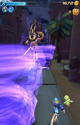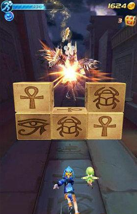 对战阿努比斯要用到跳房子技巧,从开始遇到堆起来的带有图腾的障碍物,到后来BOSS挥动法杖带来的龙卷风、冲击波等等都需要玩家拥有较强的预判意识与反应速度,说白了,就是一个拼手速和大脑反射弧长度的世界啊!