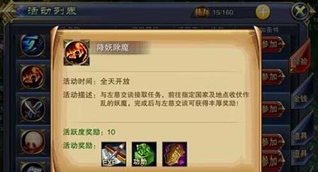这个任务有点不一样的是,接取任务后并不能跟其余任务一样直接获得活跃度,而是在击杀怪物后才能获得。完成之后,回到本国“左慈”那里就可以获取经验和黄巾宝藏等了。玩家们记得每天都要去完成这个任务哦!