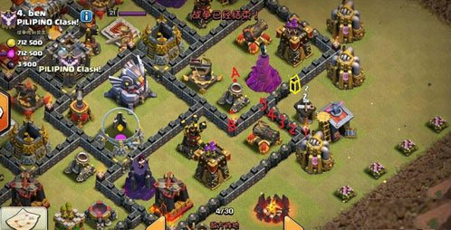 2, 地震如若放在迫击炮下方B位置,,仅可以开到3个区域,同时,3,4,5号墙被拆除,然而,女王却是往6点方向走,有木有,原因就在于5号墙的右边的那堵黄墙挡住了女王前往12点的步伐,女王轻松向下走灭鸟炮援军。