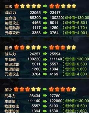 70级后,胖墩每次提升星级,各方面属性提高的数值都是一样的,每次升星,血量增加10920,攻击力会提高546点,炎王稍弱一些,但也差不多~那么如果升到十星,它们能变得多强呢?