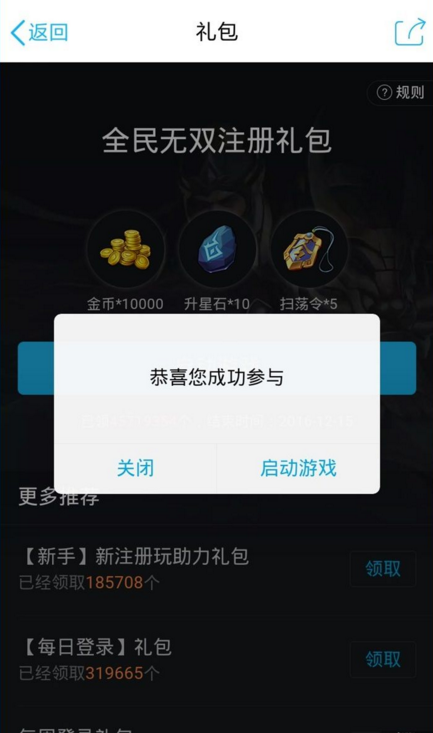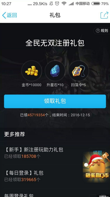 礼包界面有这礼包内含的物品内容以及礼包领取的结束时间,我们点击领取礼包进行领取。