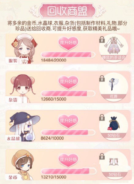 睡鼠的茶话会套装是新版本中新玩法“回收商盟”中的套装,玩家可以通过将手里多余的金币、水晶球、衣服、杂货(包括制作材料,部分珍品)送给各个回收商,从而提升回收商的好感度,就可以获得精美的套装了。