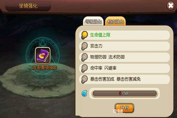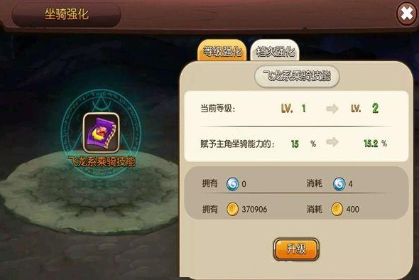 玩家可通过消耗道具“坐骑技能石”提升乘骑技能等级,从而提高属性转化比例。