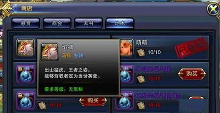 兑换老虎需要50个残卷,对于一般玩家来说可谓非常难,但只要慢慢攒着就好了。之后,玩家就可以选择兑换圣马具了,因为马具是所有坐骑共用的,只要一套最强力的就可以了。圣马具需要的残卷相比焰啸来说不算多,只要按照自己的等级去兑换就可以了。