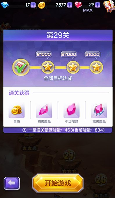 通关之后玩家们可以获得金币、初级魔晶、中级魔晶和高级魔晶。