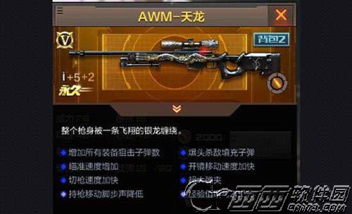 全新的永久AWM,枪身被一条飞翔的银龙缠绕,超大的弹夹及不错的切枪速度让使用者可以从容面对各种战场突发情况。适合团队竞技、爆破模式中使用。
