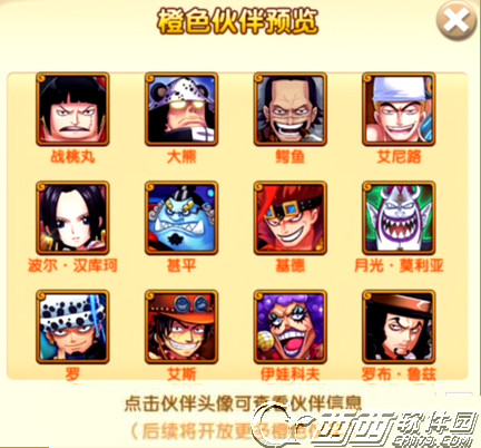当然也可以有更多的搭配,除了乔巴作为治疗是必须要持有的,也就是说不论你在酒馆中抽到,或者探索奇遇花1500J买,或者伙伴商店慢慢用海魂换碎片凑,必须要做的就是他。目前的橙色伙伴也是比较多的,主要有战桃丸、大熊、鳄鱼、艾尼路、女帝、甚平、基德、莫利亚、罗、艾斯、人妖王以及罗布。