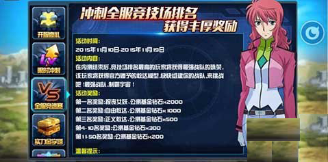 在活动中,时不时会有一些活跃任务,比如限时挑战n次副本,比如远征奖励翻倍等,这些都不容错过;还有一些消费活动,比如消费n钻送机体,消费n金币送道具,我们都可以借此好好挥霍一下体验花钱的快感。