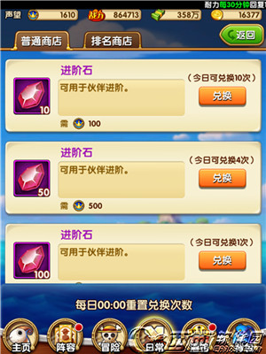 竞技场中我们可以用声望来购买进阶石,每天兑换的次数有限,花费的声望也是较多的。