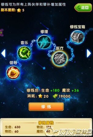 我们每修炼一个技能都需要花费星星,第一轮每个技能消耗10颗星星,第二轮消耗15个以此类推,开启宝箱同样需要消耗星星。每个技能都会增加不同的属性,我们需要依次来学习。我们只有学习完了一轮技能之后,才能学习到下一轮技能。