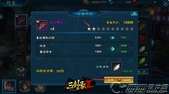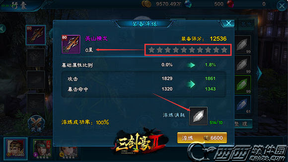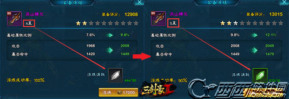 淬炼成功一次,右部的星星将变成银色,即为1星。再次淬炼成功,则变成金星,即为2星。星级越高,需要的淬炼石数量越多。
