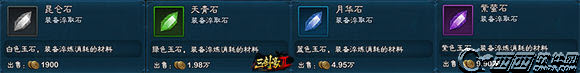 淬炼材料分为4阶,从低到高阶为:昆仑石、天青石、月华石、紫萤石。装备当前星级越高,需要使用的淬炼石等级越高。
