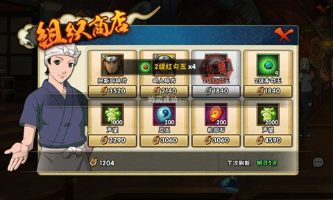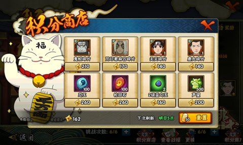 玩友们可以通过这三个系统的商店兑换忍者碎片、勾玉、忍玉、轮回石、声望等物品。
