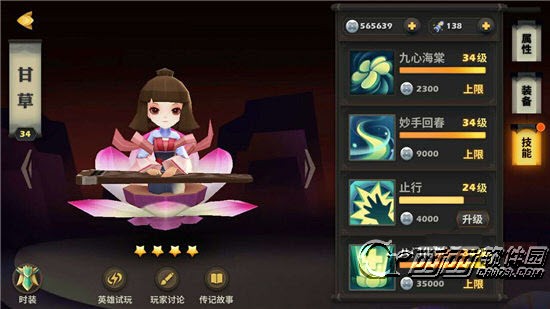 八门化伤:以自己为中心召出一个治疗阵,大幅治疗阵内的所有友方(亲测,包括NPC)回复大量生命值。(丧心病狂的群体治疗!这也是为什么甘草是一个前期能一直用到打后期的英雄的原因!有单体治疗有群体治疗,副本用可以拿来提高获得三星的几率,PK使用可以让敌人郁闷的不行。)