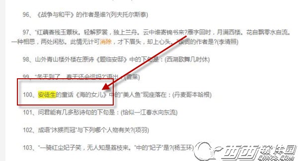 在然后可以在下面的题目汇总出看到,要查找的“安徒生”关键字变成黄色字体,让你可以一目了然找到答案。
