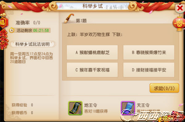 2、完成对春联题目,获得正常科举题目的活跃度奖励。