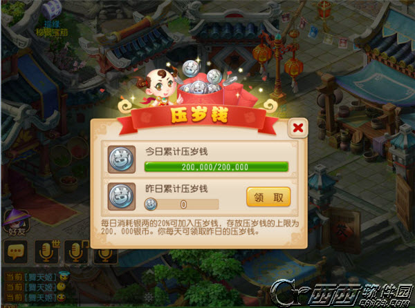 2、只有消费的银币会作为压岁钱存储起来,金币和仙玉不会计入统计。
