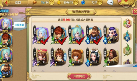 最后是主控英雄。玩家选择开始挑战即可。切记克制职业可以造成大量伤害。这在前期对通关时常很有帮助,后期影响的就是是否能顺利通关的问题了。