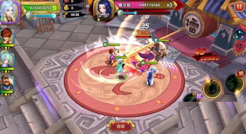 进入战斗后,四个英雄会同时出现在战场,第一个主控英雄由玩家控制。场景中没有附属小怪。所以相对而言比较容易发挥。对准BOSS输出即可。