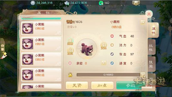 宠物要求:尽量捉小黑熊,还是攻值超68的,虽然难捉点,但卖得快,不愁销路。