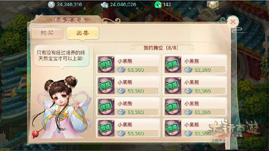 交易系统:独立于多宝阁的交易系统,与多宝阁一样,但上架物品不占用多宝阁上架物品位置。就是说,你在多宝阁上架8件物品,在任务宠交易这里还可以上架8只宠物。