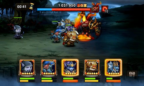 此时,五个人都应该是满能量(有时候运气不好神灵能量不满),等boss的大招(咸猪手完全压出来)放出后除了鱼人(鱼人全程不开大!)外四人都立刻开大。