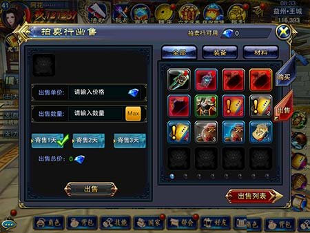 玩家可以进行购买当然也可以进行出售,出售自己不需要的物品。自己定价格和出售数量。也可以选择出售的时间,这一点还是很灵活的。