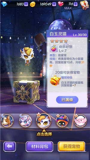 宠物白玉灵猫升至20级可以获得。这个宝物比较容易获得,把最初的宠物白玉灵猫提升到20级即可。花费的金币不是很多,建议新手玩家可以试一试。