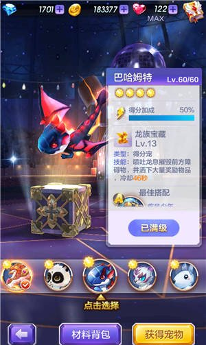 最后一点,玩家在选取宠物时要注意优先选取那些有专属宝物的宠物。像焰火之灵和巴哈姆特比较起来,虽然技能效果比较强力,分数加成也比较高。但是巴哈姆特搭配自己专属宝物魔龙化石后得到的分数也许并不比焰火之灵差。由此可见有专属宝物的宠物我们应当优先培养。