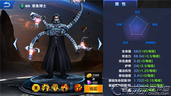 在腾讯超级战场中章鱼博士是一个非常强力的辅助英雄,给予队友极大的帮助,不过很多没有玩过章鱼博士的小伙伴,还不清楚这个英雄怎么样吧,没关系,西西小编本次就来为大家详细分析一下辅助英雄章鱼博士的技能属性,大家可以参考一下。